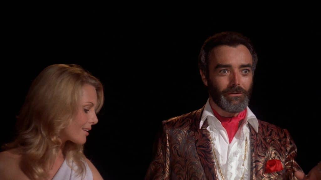 Scorpion Releasing and Kino Classics presents Doctor Death: Seeker Of Souls with a 1080p master transfer in 1.78:1 sourced from an HD remaster of the Original Camera Negative from 2015 that looks really great. This transfer was first released in 2016, and it is being released again with a new slipcover. The transfer provides nice, natural film grain absent of any compression artifacts or other such damage. This leads to a great array of fine detail that should please fans of the film. Subtle details in the production design for Doctor Death’s layer stand out more than ever before. The film features some striking colors within the costumes and production design that pop off the screen with notable vibrancy. The film has been cleaned up immensely with no noticeable instances of damage or dirt detected here. Skin tones look natural with some makeup skewing a bit pale, and the presentation offers up deep black levels free of crush. This Scorpion Releasing effort still holds up well.