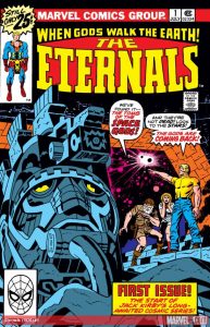 The Eternals were created by Jack Kirby and they first appeared in Eternals Issue#1 which was released in July of 1976. The origins of the Eternals starts with the Celestials. As Kirby fashioned the story, the Celestials had visited Earth over five million years ago. In the grand scheme of things, they were genetic scientists. They plied their skill on early “prototype-humans” and created two completely divergent races. The almost immortal Eternals and the race of genetically unstable beings known as the Deviants. Their experiments lead to the future possibilities of super-powered mutations in humans. With their experiments showing promise, Eatth was not the only planet they decided to ply their trade. They also paid visits to the Kree and Skrull homeworlds and found similar results with their activities.
